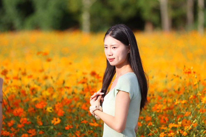 花溪十里河滩大片的硫华菊花海如同金色的画卷
