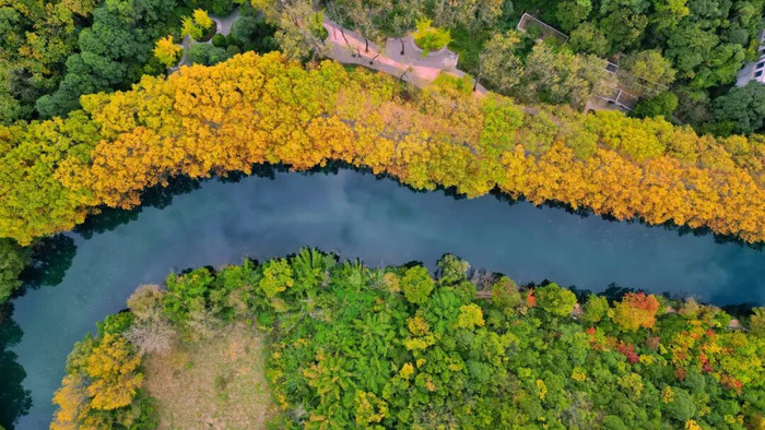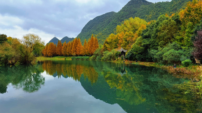 金秋时节的花溪十里河滩,层林尽染醉游人