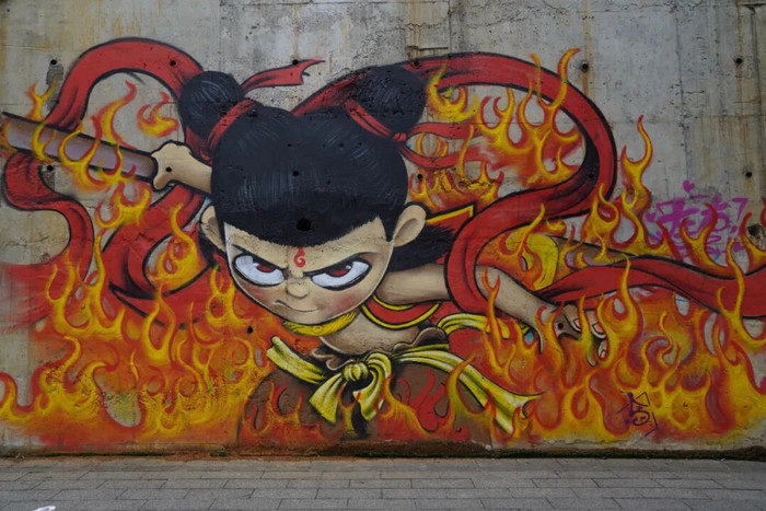花溪区美的国宾府的哪吒主题涂鸦墙