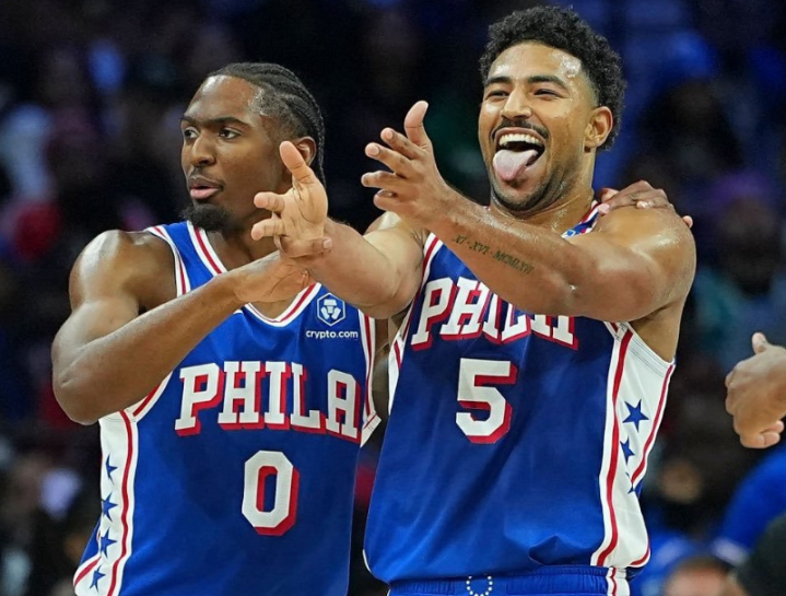 但最意外的球队,是76人,开局四连胜,东部第一!今夏76人用探花签选择的埃奇库姆,场均22.3分5.5篮板5.5助攻,联合马克西场均37.5分3.8篮板8.3助攻,成为联盟最犀利的二人组,双人组合场均得分联盟第一!此外,休赛期被迫签下资质报价的格莱姆斯,和乌布雷搭建起最强侧翼组合,场均都是17.8分入账,这四人组合,将76人拉升到场均得分(129.3分)联盟第三,三分球命中率41.9%联盟第一,场均命中16.3记三分球联盟第三!还有一点很有趣,76人本赛季场均失误只有12.3次,联盟最佳水平!