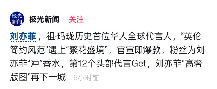 刘亦菲此次直接登顶全球title,相当于在顶奢香氛圈为华人艺人撕开了一道口子,这份认可度堪称“断层式领先”。