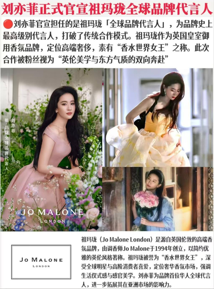 目前,祖玛珑已官宣将陆续发布刘亦菲拍摄的全球广告大片与线下活动,全网都在期待这场“颜值与质感并存”的视觉盛宴。